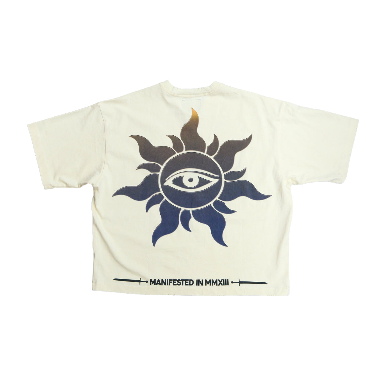 This T-Shirt is crafted from 10oz mid-weight washed fabric and features a striking art piece topped off with stones around the crown.