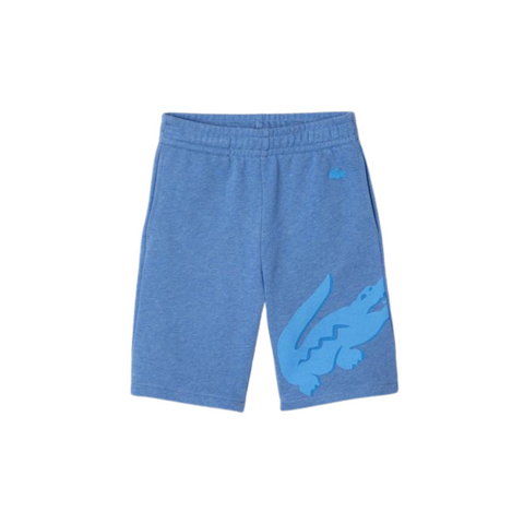 KIDS Lacoste Oversized Crocodile Print Flecked Organic Cotton Shorts (Blue Chine)