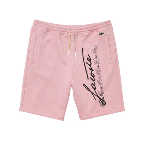 Lacoste Men's Signature Print Cotton Fleece Shorts (Pink)