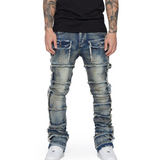 Our signature "PHOENIX 2.0" stacked jean is a stylish and unique addition to your wardrobe. Made with high-quality denim fabric, this jean features a dark vintage wash, with intricate stitching details giving it a unique and fashionable look. The jeans have a relaxed fit and stacked style and boasts the following features:
