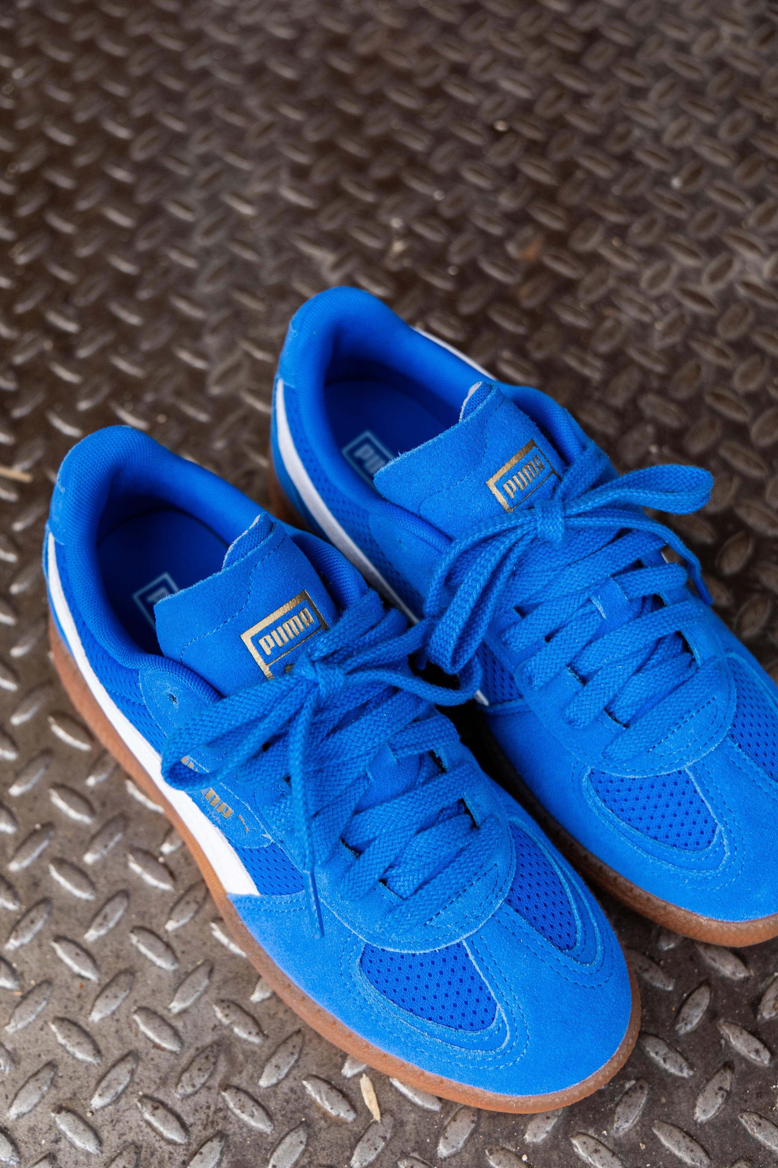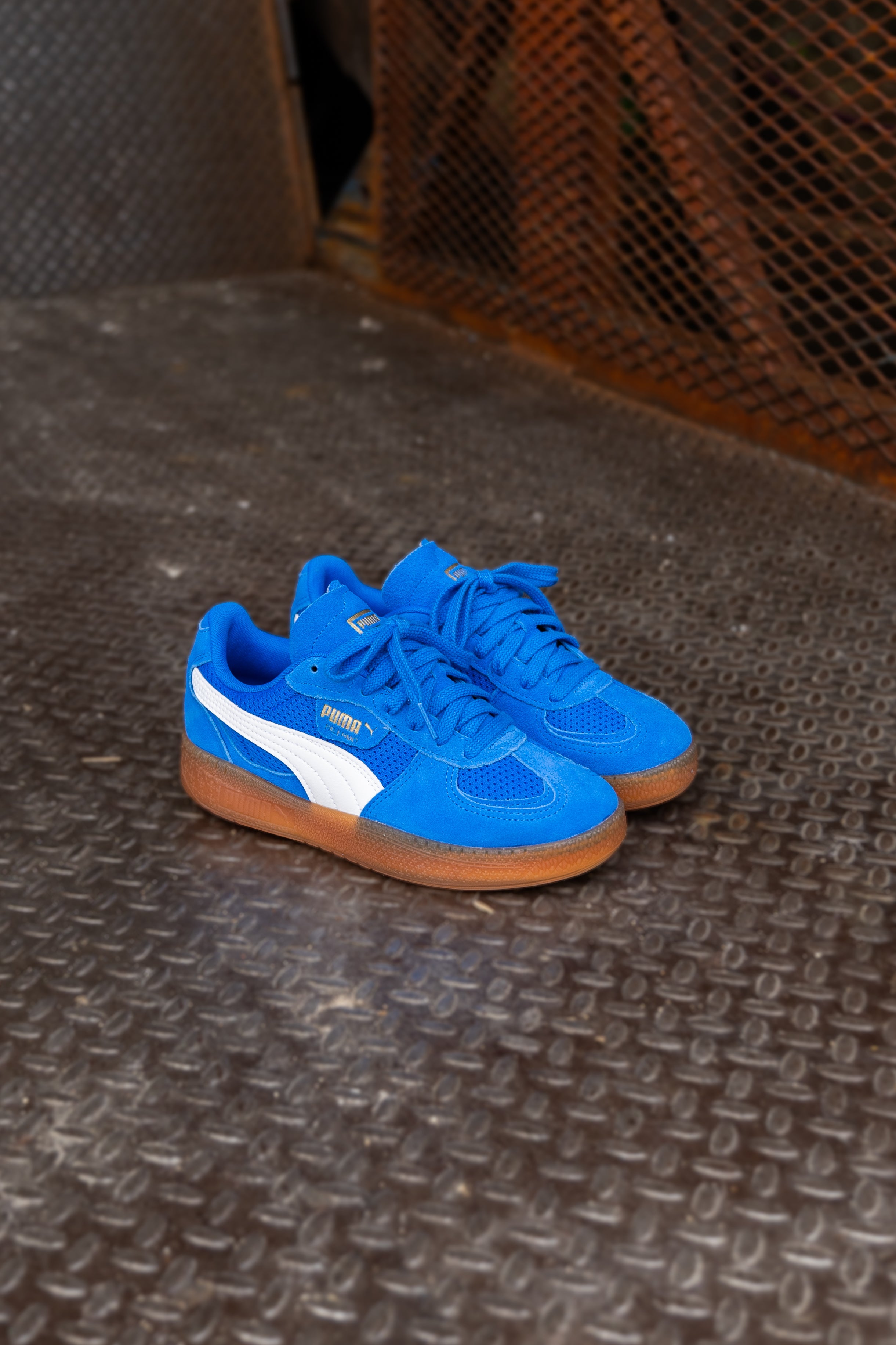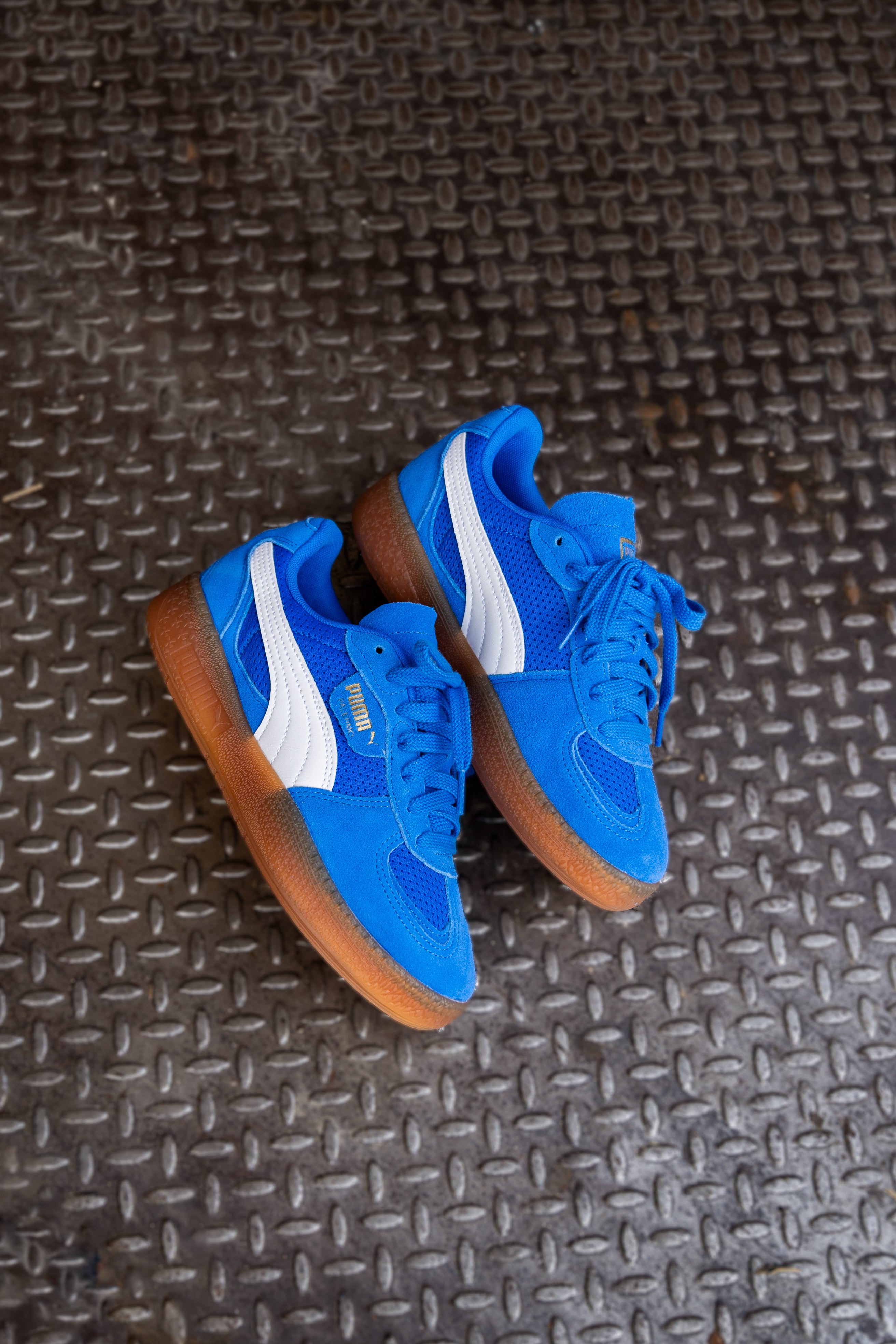 Straight from our archives, it's the PUMA Palermo. This classic terrace shoe debuted in the 80's and now, we've brought it back for the fans. With its signature T-toe construction and classic gum sole, this version features a textile upper with a synthetic PUMA Formstrip, suede overlays, and a semi-transparent rubber tooling.